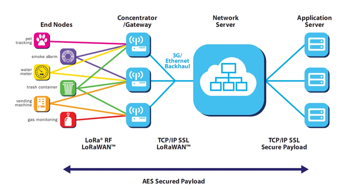 LoRa obsługuje komunikację punkt-punkt i sieci gwiazdowe oraz realizuje scentralizowane gromadzenie i przesyłanie danych z wielu węzłów za pośrednictwem urządzeń bramowych.