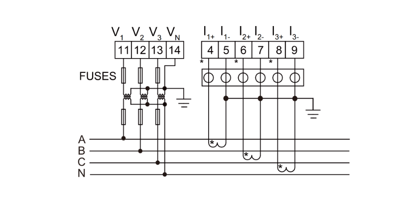 | Wejście | Połączenie | Jednofazowe – 2-przewodowe, 3-fazowe – 3-przewodowe, 3-fazowe – 4-przewodowe | ||