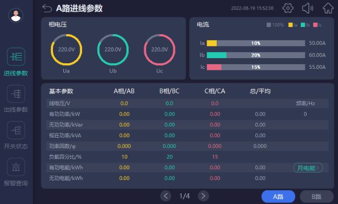 Interfejs ekranu dotykowego: System monitorowania zawiera interfejs ekranu dotykowego, który wyświetla szczegółowe dane i parametry monitorowania. Umożliwia operatorom wizualizację stanu operacyjnego systemu dystrybucji zasilania w centrum danych.