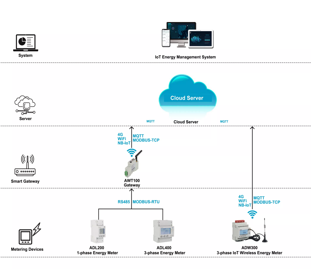 | ADW300 | Miernik bezprzewodowy ADW300 służy głównie do pomiaru trójfazowej mocy czynnej sieci niskiego napięcia. Posiada komunikację RS485 i funkcje komunikacji bezprzewodowej WiFi/4G/Ethernet/LoRa, co jest wygodne dla użytkowników do monitorowania, odczytu i zarządzania zużyciem energii elektrycznej. Można go elastycznie zainstalować w skrzynce rozdzielczej, aby uzyskać podelementowy pomiar mocy, statystyki i analizę różnych obszarów i różnych obciążeń. | |