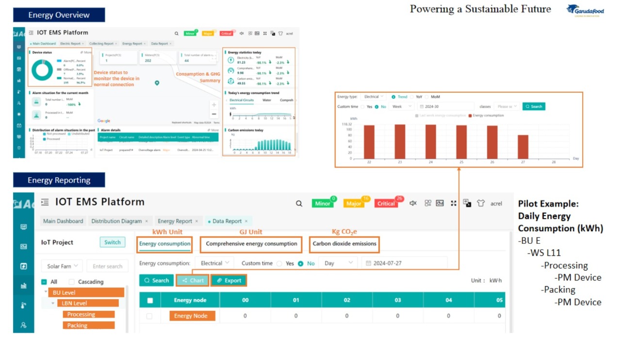 GarudaFood, wiodący indonezyjski producent żywności i napojów, produkuje wysokiej jakości produkty dla konsumentów w całym kraju. Posiadając 10 fabryk w Indonezji, firma potrzebowała scentralizowanego rozwiązania do monitorowania energii w celu śledzenia zużycia i optymalizacji kosztów operacyjnych.