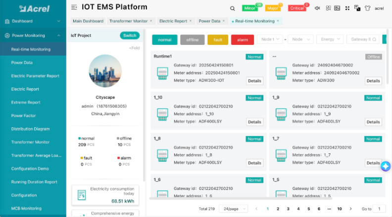 Oprogramowanie: platforma zarządzania energią Acrel IoT