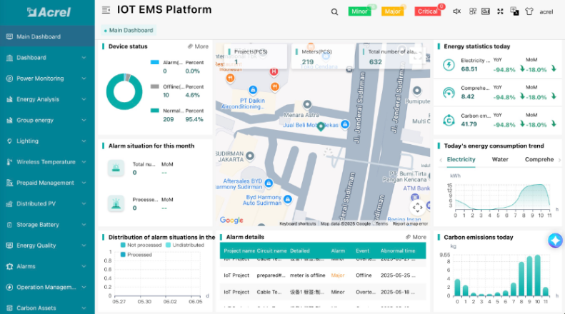Aby umożliwić zdalną obsługę i inteligentne monitorowanie, firma Acrel wdrożyła zintegrowane rozwiązanie łączące licznik energii ADW300-4G z platformą IoT, zapewniające pomiary w czasie rzeczywistym, alerty o usterkach i scentralizowane sterowanie. Całkowita wartość inwestycji w ramach projektu wynosi około 200 000 USD